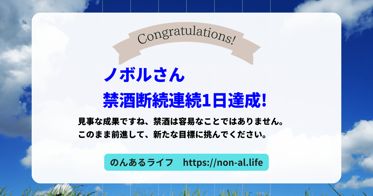 ノボルさんは、禁酒を1日間継続しました!