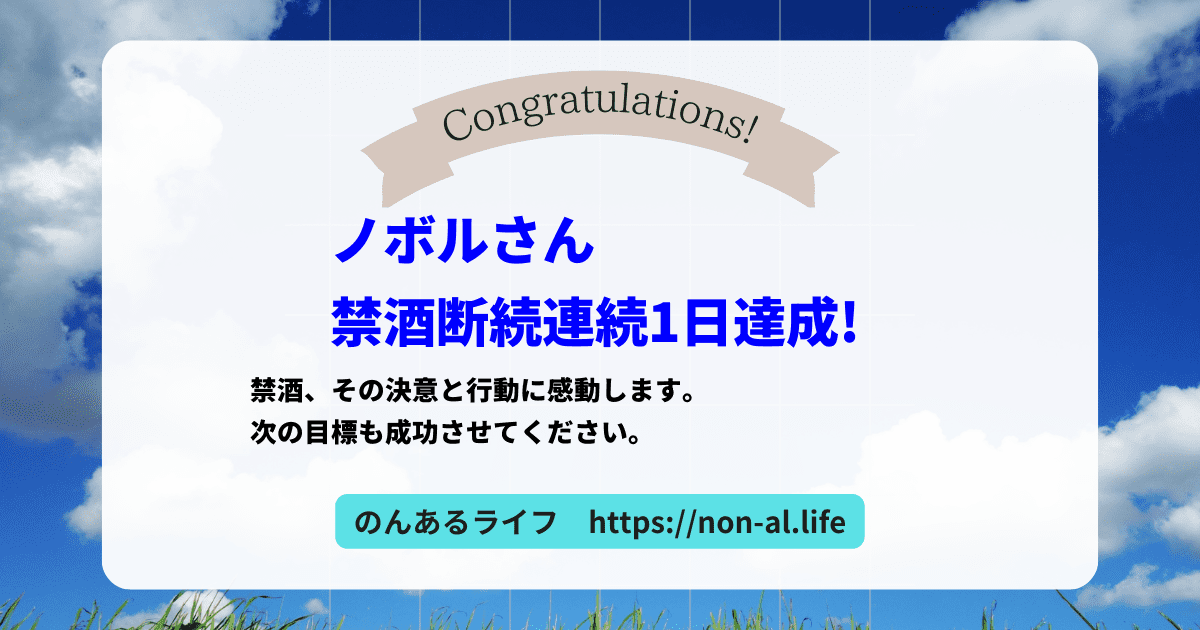 ノボルさんは、禁酒を1日間継続しました!