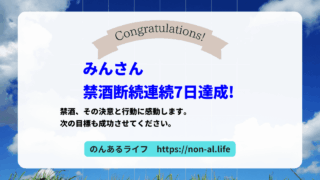 禁酒成功おめでとう、ノボルさん! 本記事は「のんあるライフ」会員の禁酒断酒の記録です。 禁酒成功コメント 一瞬カフェでアルコールにひかれたけど、カフェオレにしました。 禁酒断酒継続記録 ノボルさんは、禁酒を1日間継続しました! サポーターか...