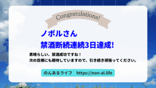 禁酒成功おめでとう、ノボルさん! 本記事は「のんあるライフ」会員の禁酒断酒の記録です。 禁酒断酒継続記録 ノボルさんは、禁酒を3日間継続しました! サポーターからのメッセージ 素晴らしい、禁酒成功ですね!次の目標にも期待していますので、引き...